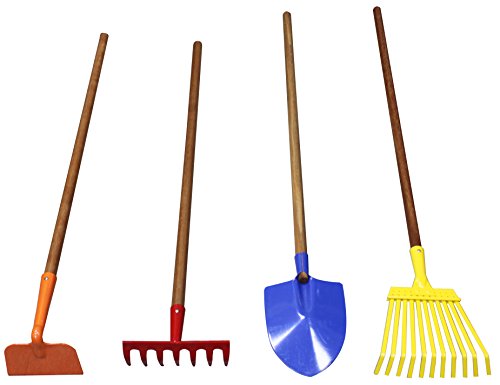 (Kaupa)/Pretend Play Dress-up/Sets/DIRECT FROM USA/Kaupa Kids Garden Tools Set, Rake, Spade, Hoe and Leaf Rake, 4-Piece, With 7/8" x36" wood handle