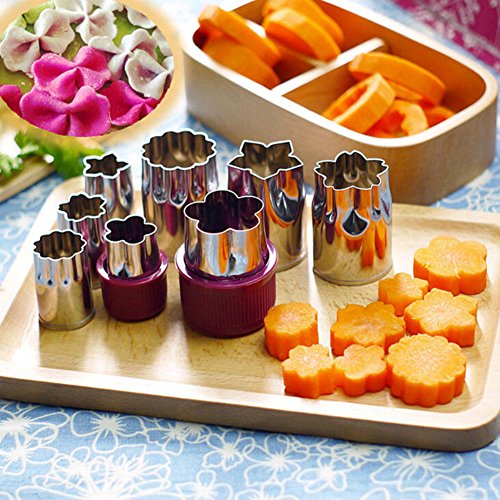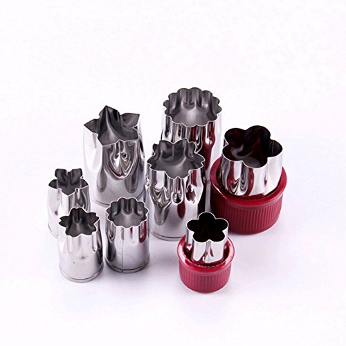Akak Store 8 Piece Per Set Stainless Steel Vegetable Cutter Mold Set Mini Cookie Cutters Flower Shape Slicer Cake Fruit Cut Tool(Red)