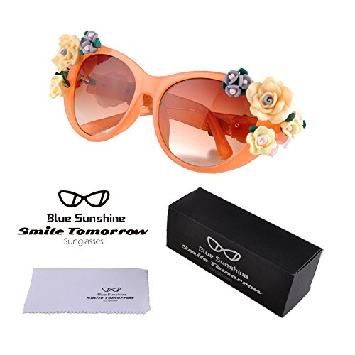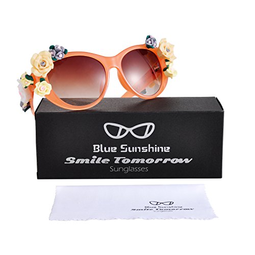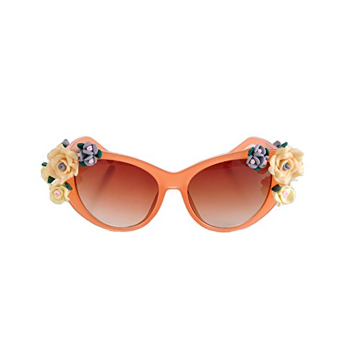 Sunglasses for Women Oversized Cat Eye Glasses Flowers Sunglasses Beach On Vaction UV400 Protection(Orange)
