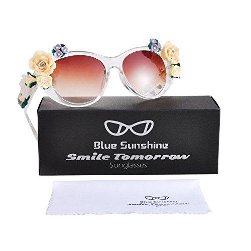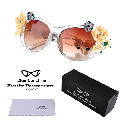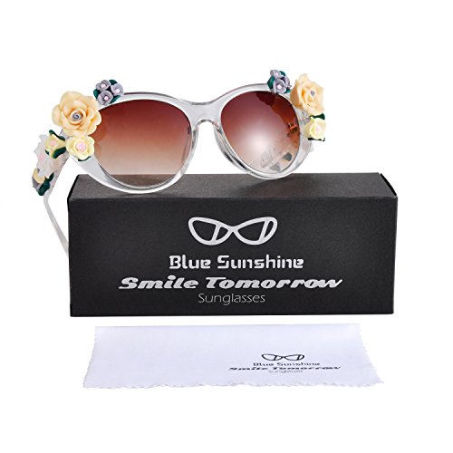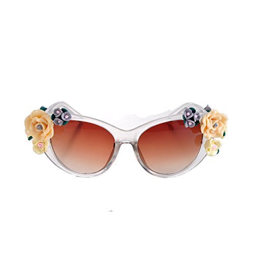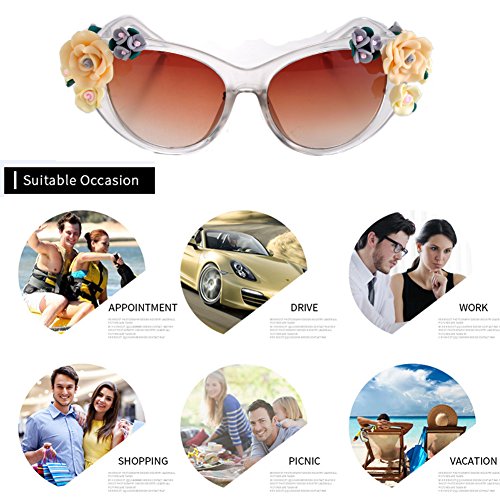 Sunglasses for Women Oversized Cat Eye Glasses Flowers Sunglasses Beach On Vaction UV400 Protection(Crystal)