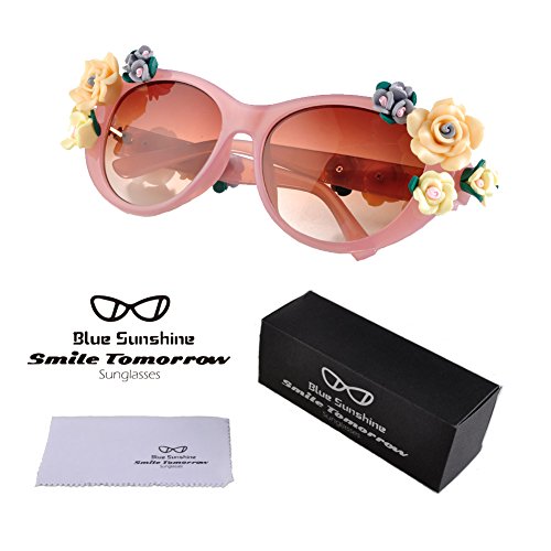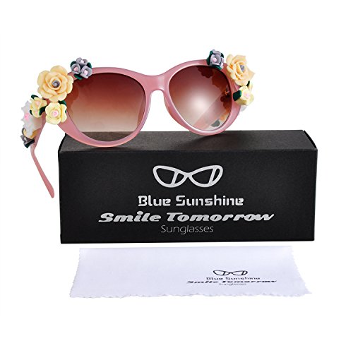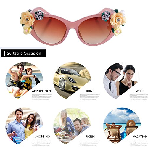 Sunglasses for Women Oversized Cat Eye Glasses Flowers Sunglasses Beach On Vaction UV400 Protection(Pink)