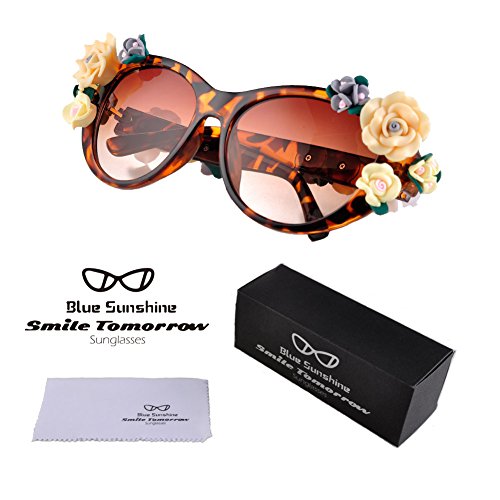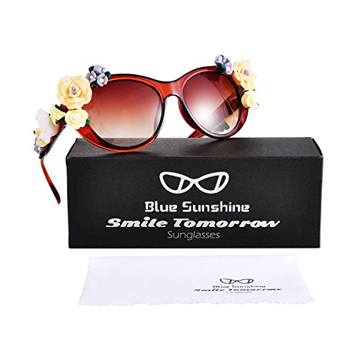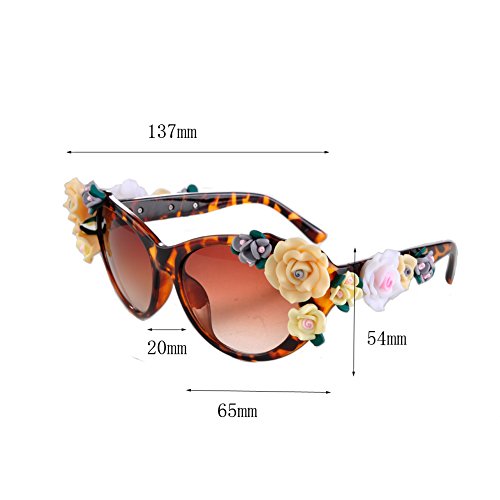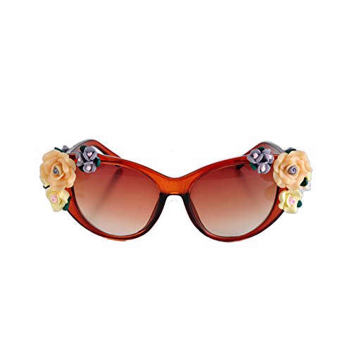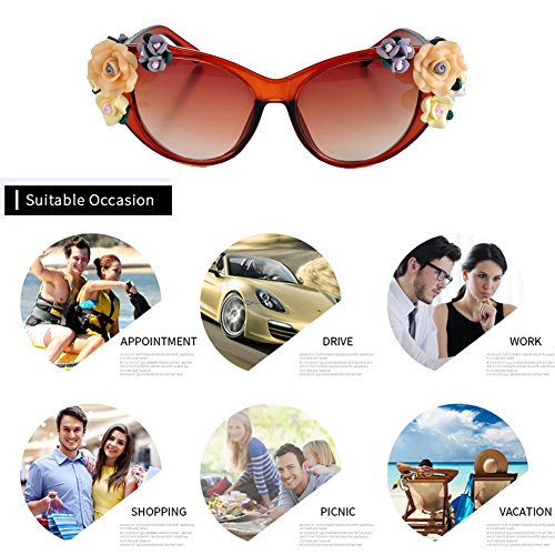 Sunglasses for Women Oversized Cat Eye Glasses Flowers Sunglasses Beach On Vaction UV400 Protection(Tan)