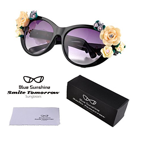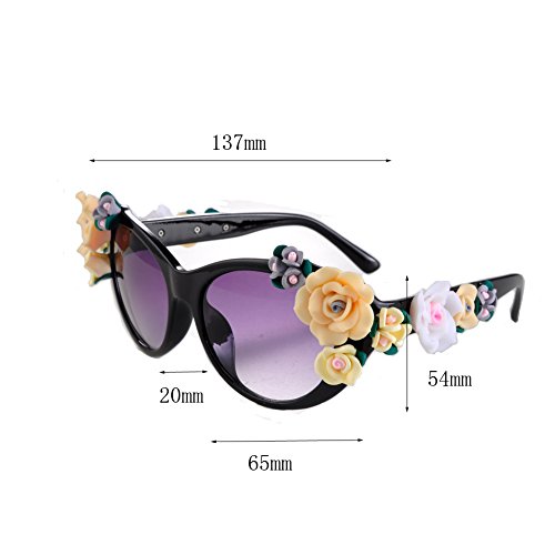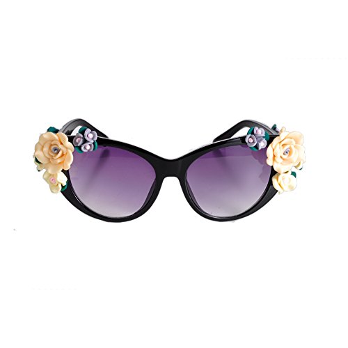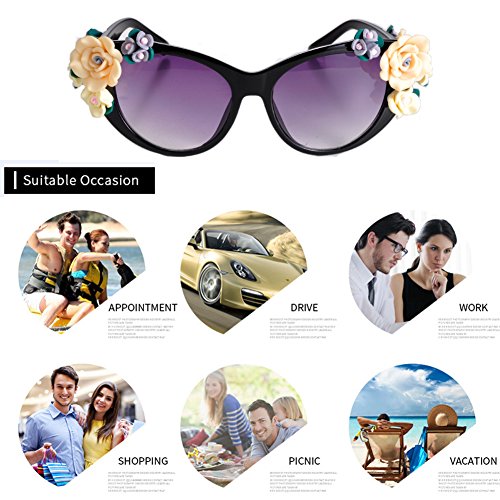 Sunglasses for Women Oversized Cat Eye Glasses Flowers Sunglasses Beach On Vaction UV400 Protection(Black)