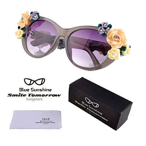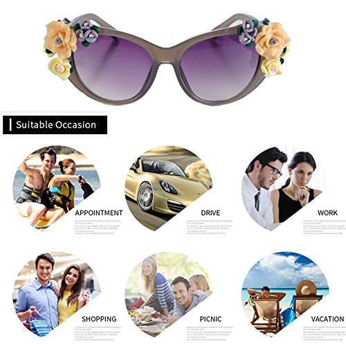 Sunglasses for Women Oversized Cat Eye Glasses Flowers Sunglasses Beach On Vaction UV400 Protection(Grey)