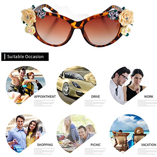 Sunglasses for Women Oversized Cat Eye Glasses Flowers Sunglasses Beach On Vaction UV400 Protection(Leopard)