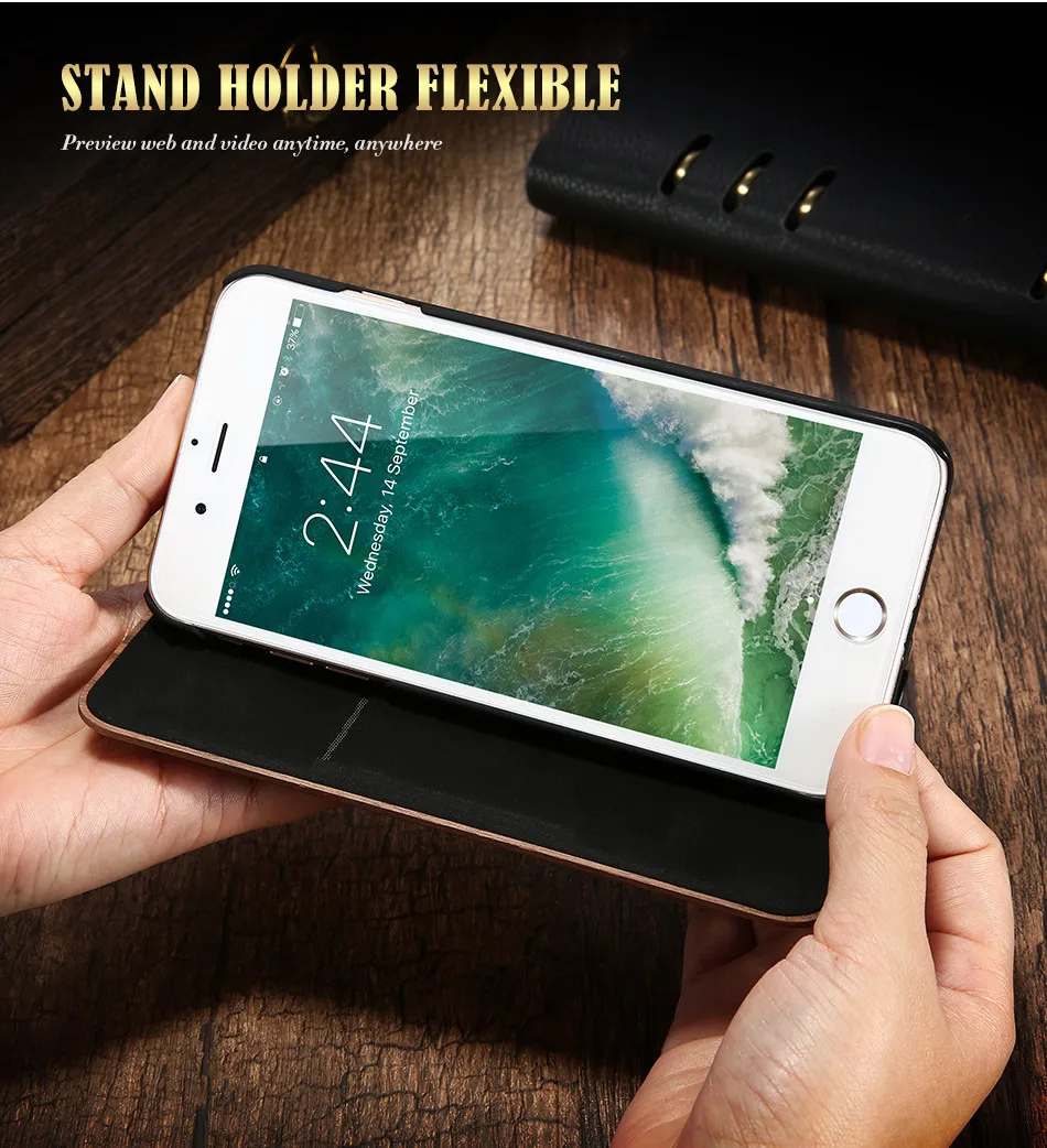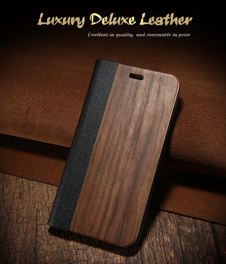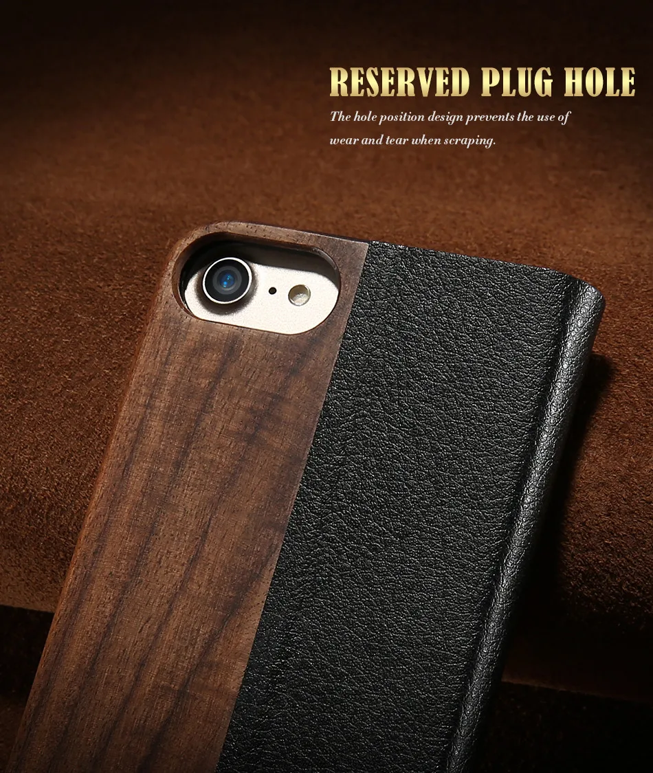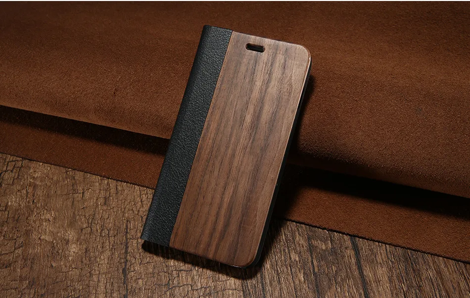 Feature One:Natural Bamboo Wood Flip Wallet Case For iPhone 7 4.7''