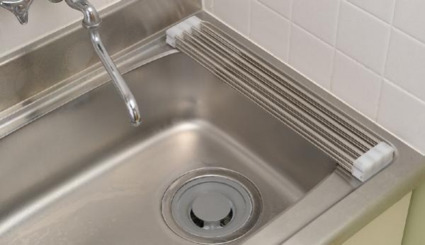 広げてスッキリ水切り、大型鍋もラクラク置けます。使用に応じてたたんだり広げたり調節できます。食洗機で洗えない大型鍋やフライパンなどの水切り、少量の洗い物にも便利です。コンパクトシンク(W550mmタイプ)にぴったりの長さで、シンク全面に使用することもできます。 |