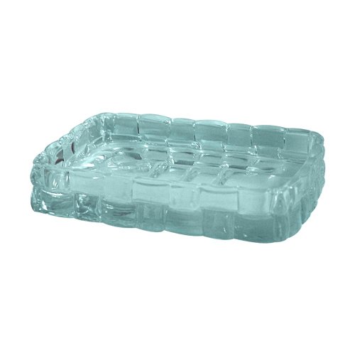 -. Title : nu steel Basket Weave Soap Dish, Aqua Glass