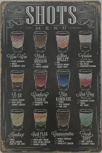 Cocktail Shots Menu Metal Tin Sign Retro Vintage Cafe Restaurant Bar Pub Home Decor 8"x12" inches Shots of Vodka Gin Coffee Gift For Him Her