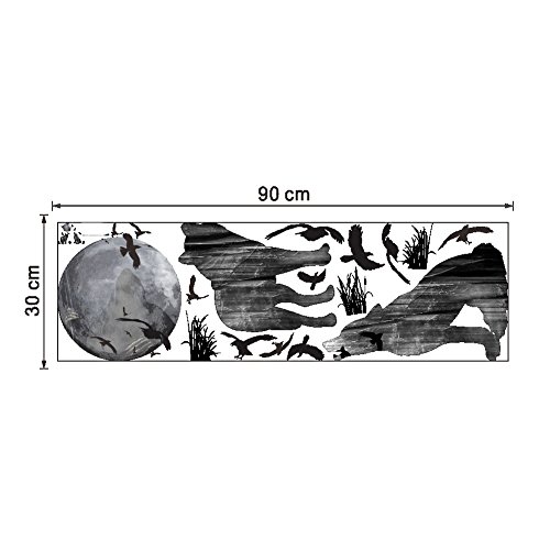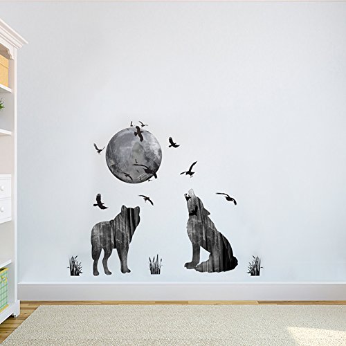 DecalMile Wolf Moon Birds Wall Decals Living Room Bedroom Removable Wall Stickers Murals