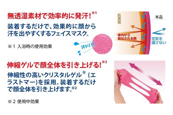 伸縮性の高い特殊ゲルが、気になる「頬」「口元」の表情筋に効率よく働きかけます。お風呂で使えば発汗効果もプラス!!たるんだフェイスラインをググッと引き上げます。 |
