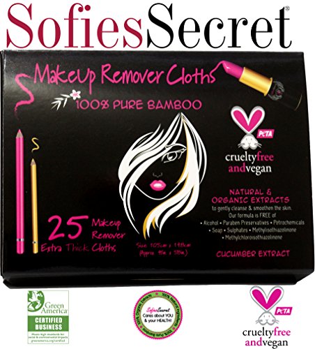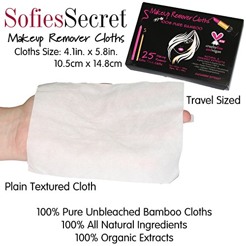 SofiesSecret Makeup Remover Facial Pads 100% Natural & Organic Extracts Travel Pack, 25 Count, 100% Pure Bamboo, Extra Thick, Organic, Recyclable,...