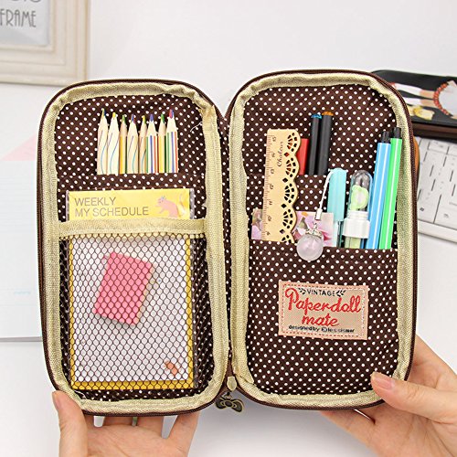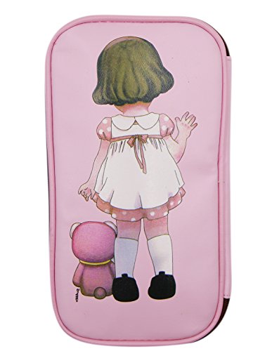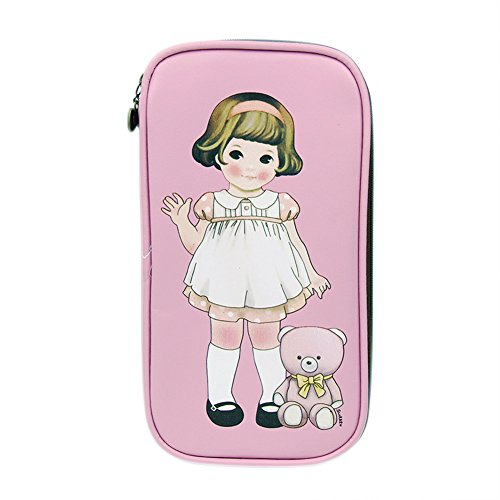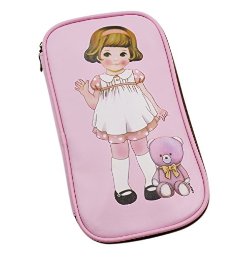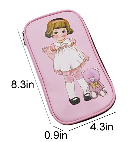 Vintage Little Doll Girl Multifunction Pen Pencil Holder Pu Leather Zipper Pencil Case Beauty Pouch Travel Makeup Bag Organizer Coin Purse Wallet,Pink