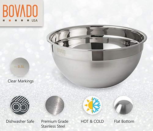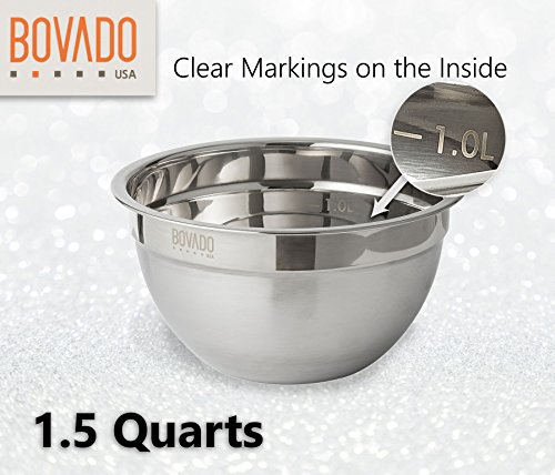 Stainless Steel Mixing Bowl - 1.5qt - Flat Bottom Non Slip Base, Retains Temperature, Dishwasher Safe - By Bovado USA