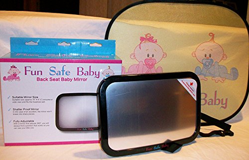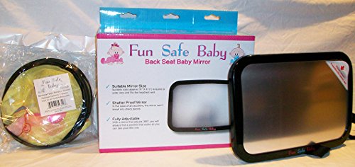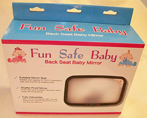 -. Feature : BEST DRIVER TO BABY VIEWING - You will be able to see your child from head to toe with our CONVEX & FULLY ADJUSTABLE MIRROR. The ball-joint on the back of the mirror allows for 360º adjustment, meaning you can pivot the mirror to any angle. With the large, crystal-clear reflection, you will clearly see if your baby is happy, sad, sleeping or wide awake. Your child is also able to see him/herself and you! / STRONGEST AND SAFEST MATERIALS - As our name Fun Safe Baby sests, we make safety a top P.R.Iority. Our rear-facing backseat mirror is made with safe, shatterproof acrylic. The mirror has undergone rigorous tests to ensure it will not shatter if your vehicle is involved in a car crash. Our strong and secure double-strap design guarantees the mirror will stay firmly fastened to the headrest. It is crash tested and parent approved! / NO ASSEMBLY REQUIREJUST THE RIGHT SIZE - The mirror measures approximately 10 x 6 ½", which means it fits nicely on most backseat headrests. Some mirrors on the market are larger and extend past the edge of the headrest, blocking the driver's view out the rear window. The convex design of the mirror allows for ample viewing area without interfering with the rear window view. / JUST THE RIGHT SIZE - The mirror measures approximately 10 x 6 ½", which means it fits nicely on most backseat headrests. Some mirrors on the market are larger and extend past the edge of the headrest, blocking the driver's view out the rear window. The convex design of the mirror allows for ample viewing area without interfering with the rear window view. / BONUS - PURCHASE THE MIRROR AND RECEIVE A 2-PACK OF SUN SHADES ABSOLUTELY FREE! Now you can keep your children cool, comfortable, and happy with our specially designed baby character shades for the backseat side windows of your car. Your baby and small children will love our adorable, fun baby characters that are imP.R.Inted in color on our sunshades.
