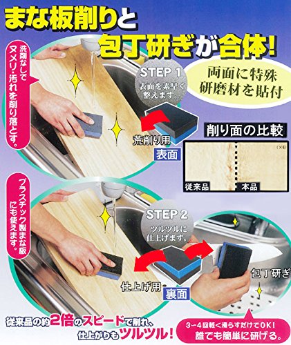 ●양면에 특수 연마재를(교정)첩부.장소를 잡지 않고 일석이조. ●세제 없이 누메리 얼룩을 깎아 떨어뜨립니다. ●플라스틱제 도마로도 사용으로 옵니다. ●초조#의 특수 연마재에 스피드 깎고, 마무리는 뒷면의 가늘게 짠눈 연마재에 반들반들로.종래품의 약2배의 스피드로 깎을 수 있고 있습니다. ※엠보스 가공 도마는 얼룩이 빠짐 없는 일이 있습니다.세라믹제의 부엌칼에는 사용 할 수 없습니다.
