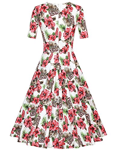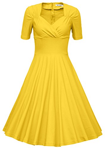 -. Binding : Apparel -. Brand : MUXXN -. ClothingSize : Small -. Color : White -. Department : womens -. Feature : Imported / Material: Rayon/ Polyester/ Spandex / Soft fabric with stretchy / Suitable for all occasions / PLS read the size chart in the detailed picture on the left carefully,not the ones by Amazon on the side of the item that you click -. PackageQuantity : 1 -. ProductGroup : Apparel -. ProductTypeName : DRESS -. Size : Small -. Title : MUXXN Women's 50s Vintage Short Sleeve Pleated Swing Dress