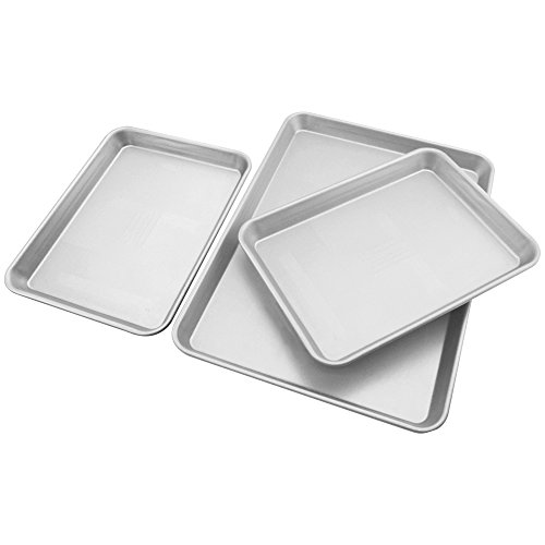 - This set includes (2) 12.5 inch x 9.1 inch x 1.1 inch quarter sheet pan, (1) 17.3 inch x 12.5 inch x 1.1 inch half sheet pan
