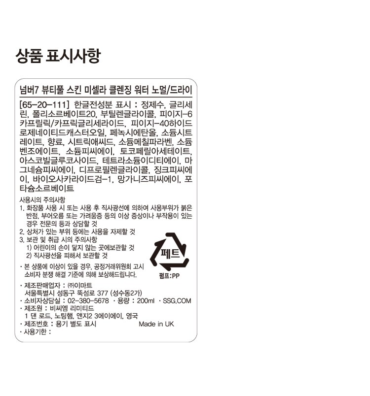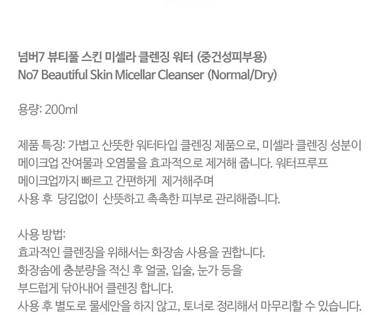 [No7] beautyful skin Micellar cleansing water (nomal/dry)
