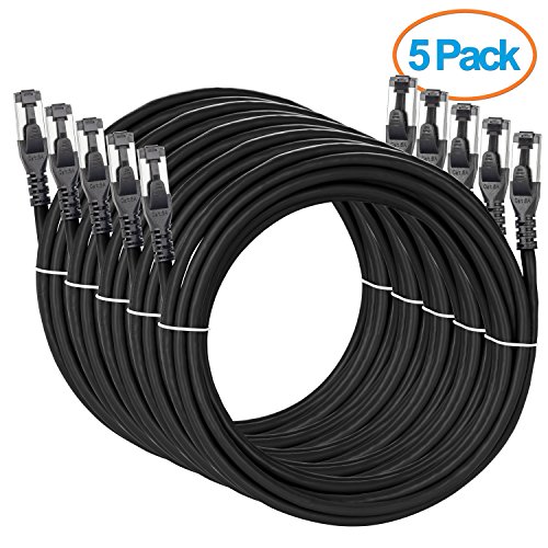 Aurum Cables High Performance Cat6a Snagless Shielded SSTP/SFTP Ethernet Patch Cable - 5 Pack - Black - 15 Feet