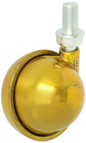 Shepherd Satellite Series 2" Diameter Metal Wheel Caster, 3/8" Diameter x 5/8" Length UNF24 Threaded Stem, 75 lbs Capacity, Bright Brass Finish