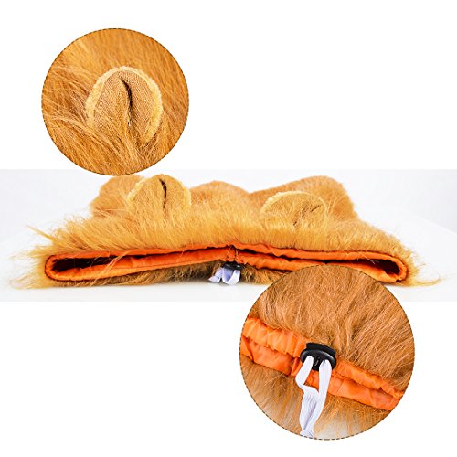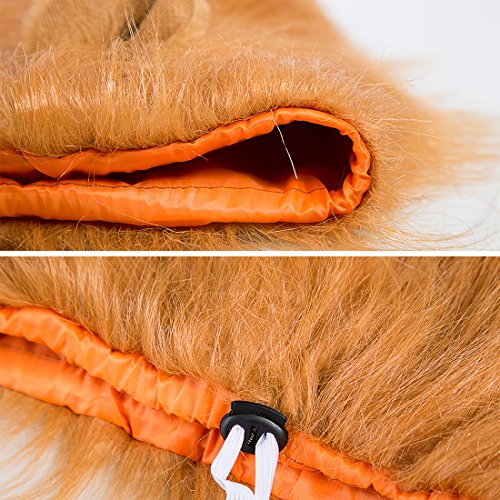 ★why choose us?? ? Bring Fun for You and Your Family. -Interesting and cute styling, make your pet like a king of beasts. -Your dog will support the pride and revel in all the attention he receives from every spectator. ? Widely Used and Comfortable to Wear. -Perfect for parties, holidays and general home entertainment. -Soft hair and looks like real, not easy to lose hair and you can take care of very fluffy. -Made of faux fur and polyester, the wig can bear day-to-day resistance from running, rolling, chewing etc. Specification: Color: Brown Head Circumference: Within 74cm/29.1inch Length: 37cm/14.6inch Width: 34cm/13.4inch Weight: 120g/0.265lb Material: Plush Applicable Gender: General Purpose Styling: Lion with Ears 0
