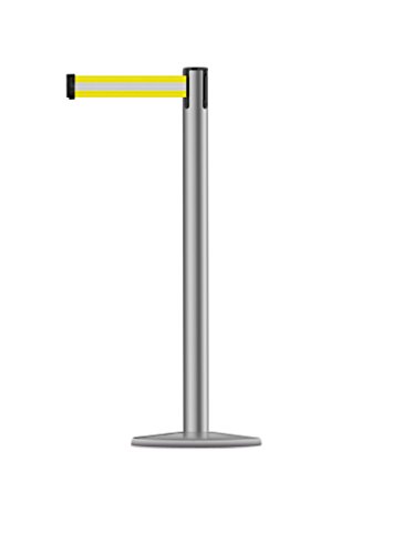 Tensabarrier 889U-3P-3P-STD-NO-S8X-C Polished Stainless Post, 2" Wide, 7' 6" Length "Yellow with Reflective Silver" Belt, 90" Length, Steel