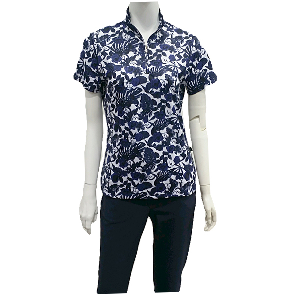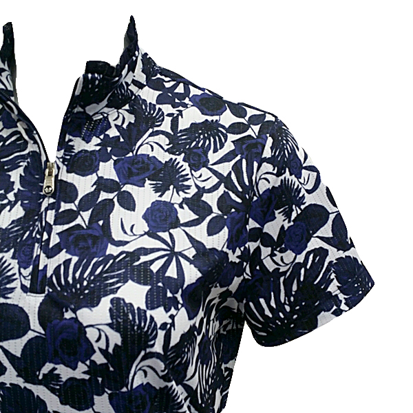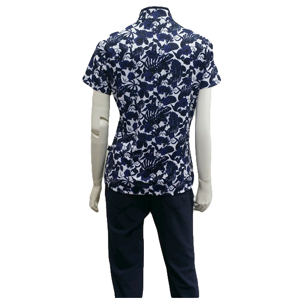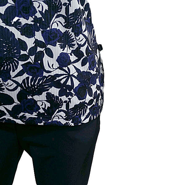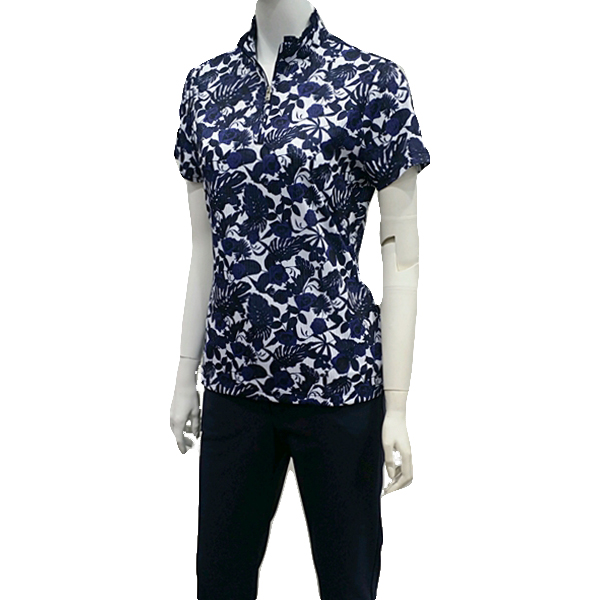 S/SP 소재에 장미프린트를 개발하여 배색으로 포인트를 준 차이나 티셔츠