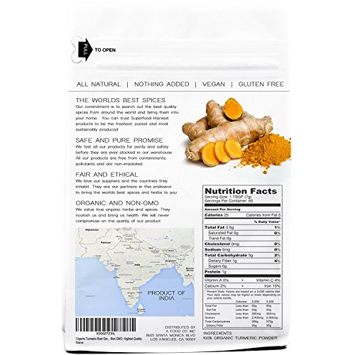 Organic Turmeric Root Powder by Superfood Harvest - 1 Pound - 100% USDA Organic, Certified Non GMO, Grade AAA Highest Quality, Fine Ground