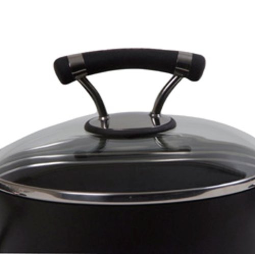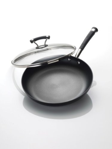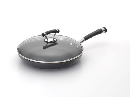 Professional heavy guage hard anodized construction provides fast, even heating and exceptional durability on innovative Circulon Contempo 12-inch Covered Deep Skillet. TOTAL NONSTICK system features High-Low wave technology coupled with the most advanced nonstick surface to offer extraordinary food relase and lifelong durability. Advanced nonstick inside and out ensures clean-up is quick and easy. Contemporary, stylish double riveted stainless steel with silicone handles for a secure, slip-free grasp. Oven safe to 400-degrees F. Domed, tempered glass lids with stainless steel rims allow you to watch foods cook without losing heat, flavors or nutrients.Feature