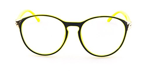 -. Feature : Style: Round / Two-toned plastic frame, Gold-tone metal engrave motif studded at sides / Clear and non-optical demo lenses, Integrated nose guards / Temple Length: 135 mm; Frame Width: 140 mm; Lens Height: 50 mm; Lens Width: 55 mm; Bridge: 19 mm / Package Included: 1*Glasses, 1*free pouch, 1*dust cleaning cloth