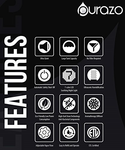- AUTOMATIC SAFETY SHUT OFF and ETL and CE CERTIFIED - Breathe easy knowing the Purazo humidifier is built to meet and exceed industry safety standards.