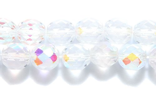 Preciosa Czech Fire 10mm Polished Glass Bead, Faceted Round, Crystal Aurora Borealis, 60-Pack