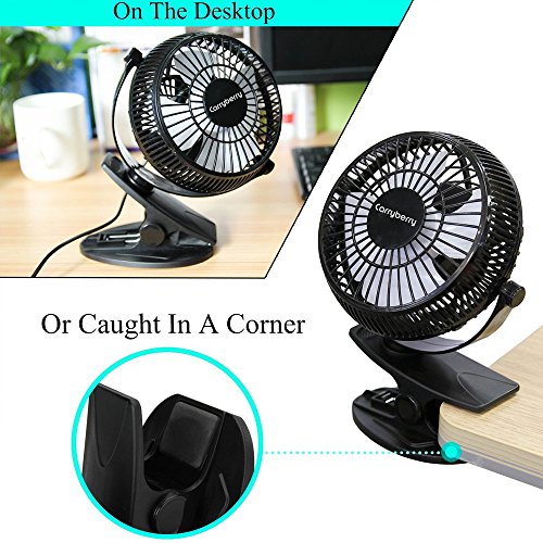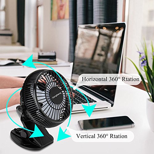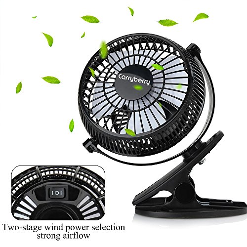 Rechargeable Clip on Fan, Quietness, Adjustable (Black)