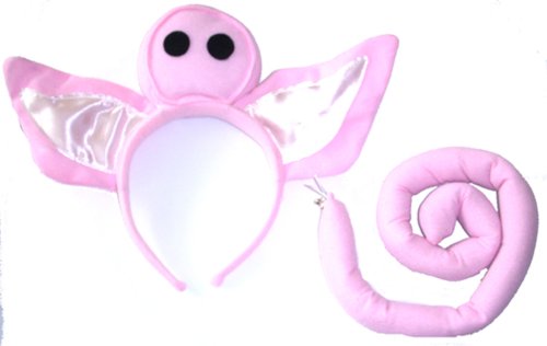-. Feature : Pig ears headband with attached pig snout / Curly wired pig tail / Felt and satin fabric / Nothing goes on the face