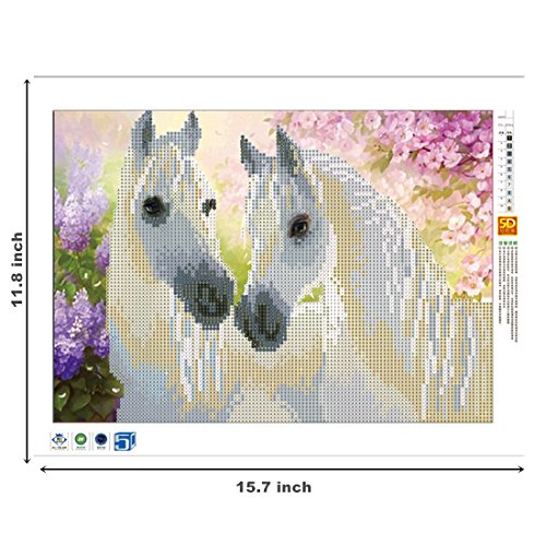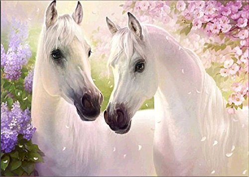 DIY 5D Diamond Painting by Number Kit, White Horses Crystal Rhinestone Embroidery Cross Stitch Arts Craft Canvas for Wall Decor