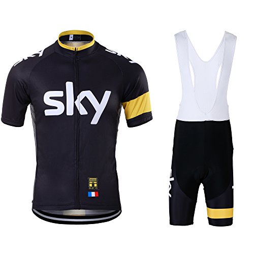 Yianerm Men's Cycling Jersey Breathable Full-zipper Comfortable Cycling Top And 3D-padded Tight Bib(Short) Set For Outdoor Riding (Large, Yellow&Black Bib Set) ¡