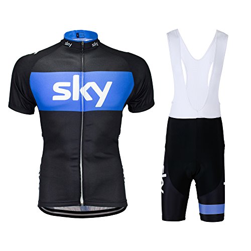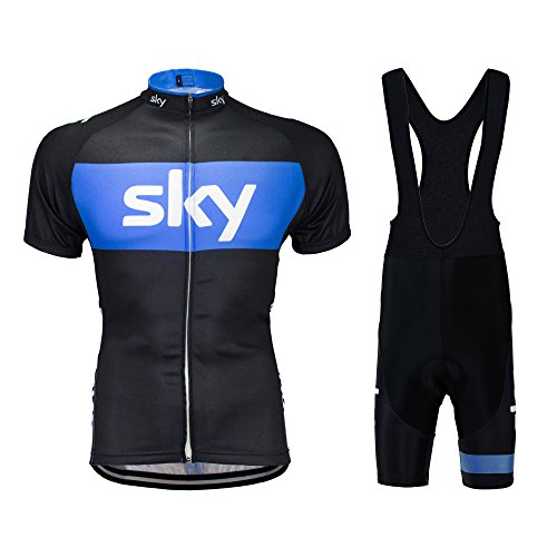 Yianerm Men's Cycling Jersey Breathable Full-zipper Comfortable Cycling Top And 3D-padded Tight Bib(Short) Set For Outdoor Riding (Large, Blue)