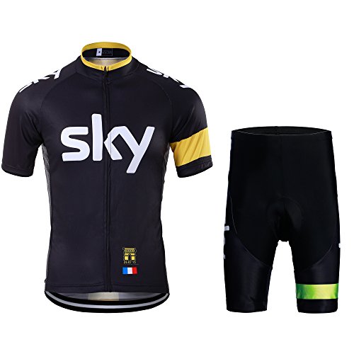Yianerm Men's Cycling Jersey Breathable Full-zipper Comfortable Cycling Top And 3D-padded Tight Bib(Short) Set For Outdoor Riding (Medium, Yellow&Black Bib Set) ¡