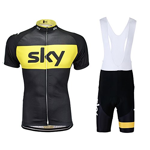 Yianerm Men's Cycling Jersey Breathable Full-zipper Comfortable Cycling Top And 3D-padded Tight Bib(Short) Set For Outdoor Riding (Large, Yellow)