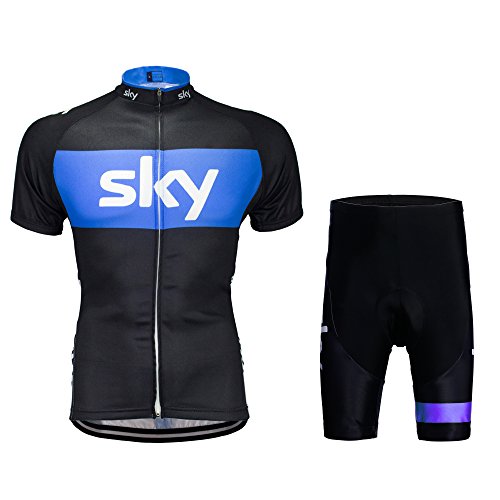 Yianerm Men's Cycling Jersey Breathable Full-zipper Comfortable Cycling Top And 3D-padded Tight Bib(Short) Set For Outdoor Riding (Small, Blue&Short Set) ¡