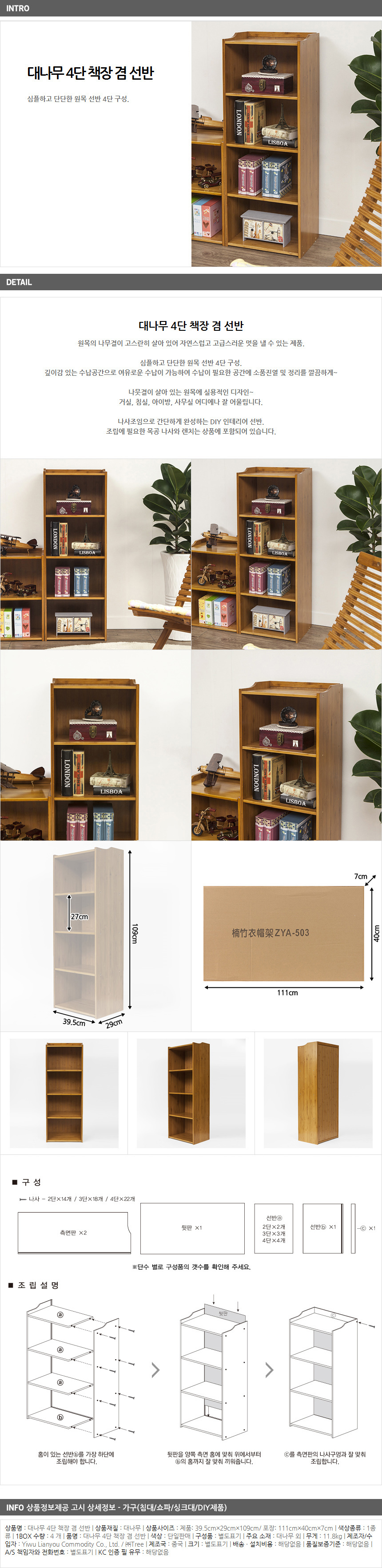 Bamboo decorated decorative shelf cabinet 4-stage space