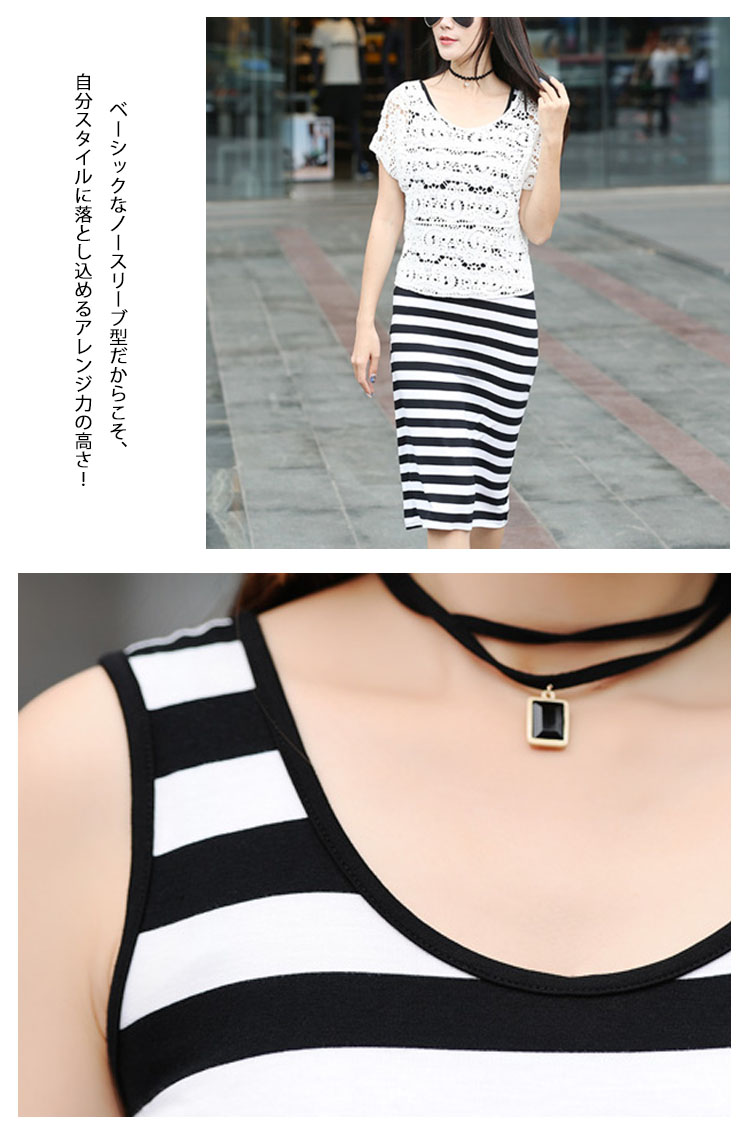 | 無駄な装飾を一切省いた潔いシンプルさが使いやすい決め手!縦ラインが綺麗なロング丈ノースリーブワンピース!深めのUネックで美シルエット★さらりとした肌触りでオールシーズン使いやすくお洗濯も簡単。シワのなりにくいのも嬉しいポイントです。 | |