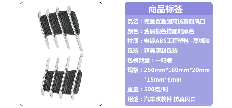 表面经由电镀处理,美观耐用。提高爱车档次。採用夜间雷射反光膜,加大提高视线宽度,距离警示保障安全。安装方便,选定合适位置贴上即可。背附双面胶。