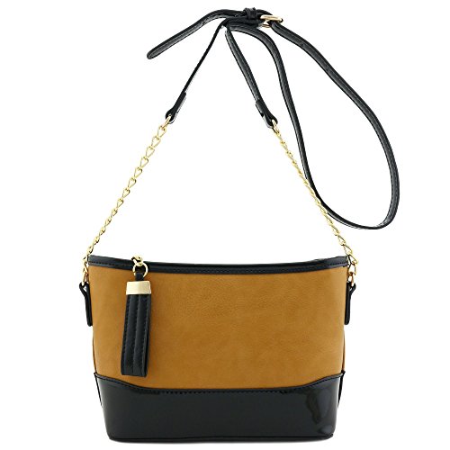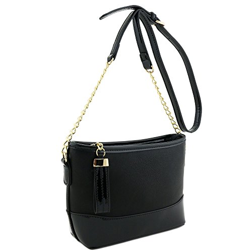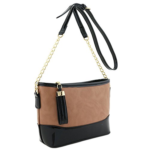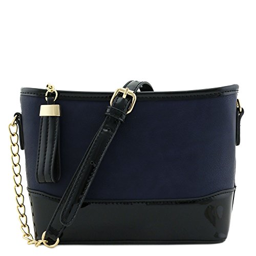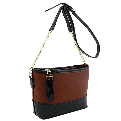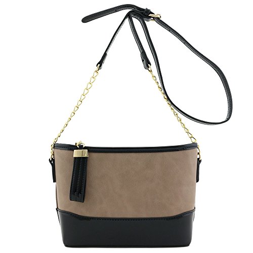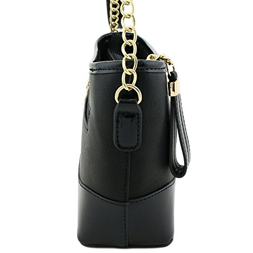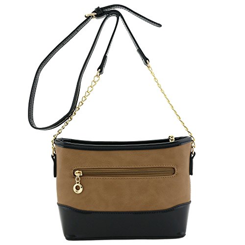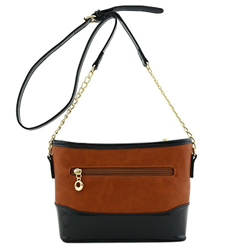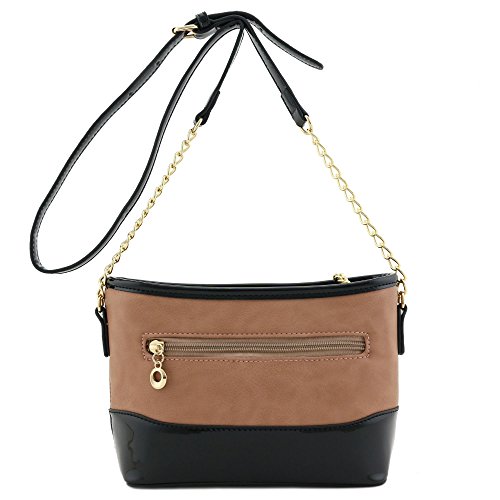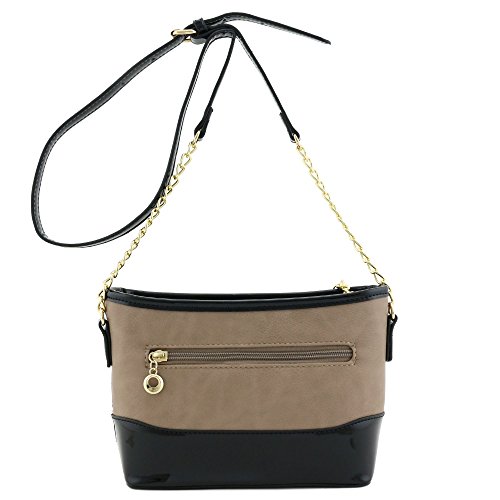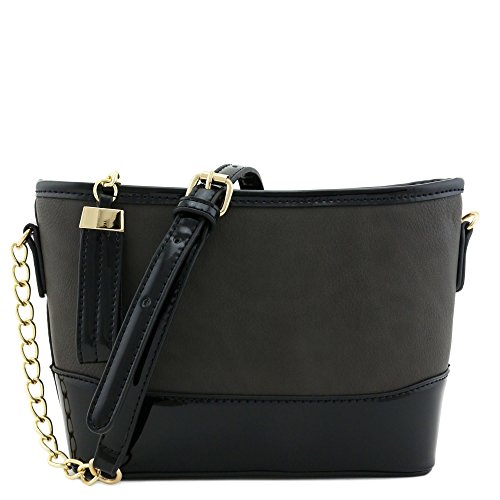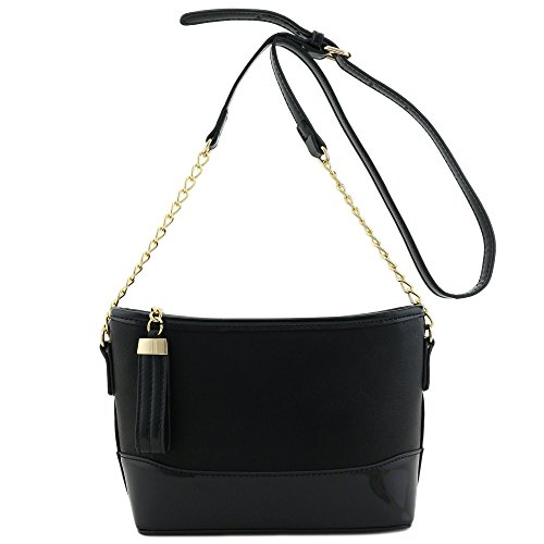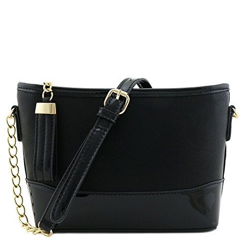 | Chain Strap Shoulder Bag with Patent Leather Trim Contrast |