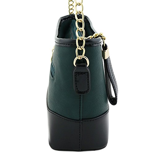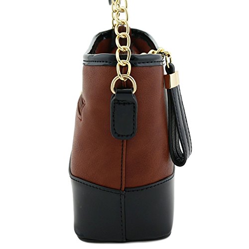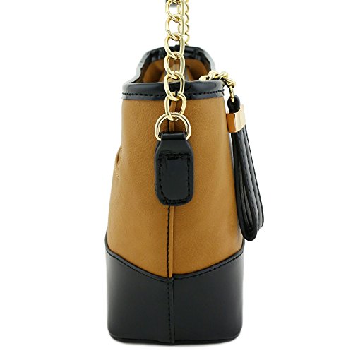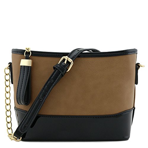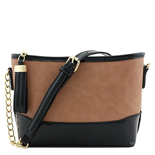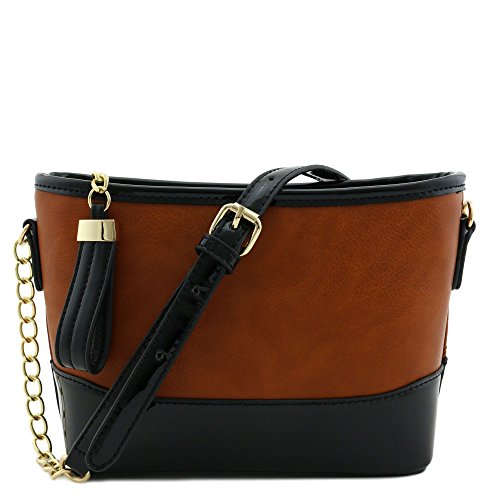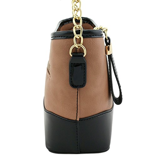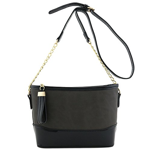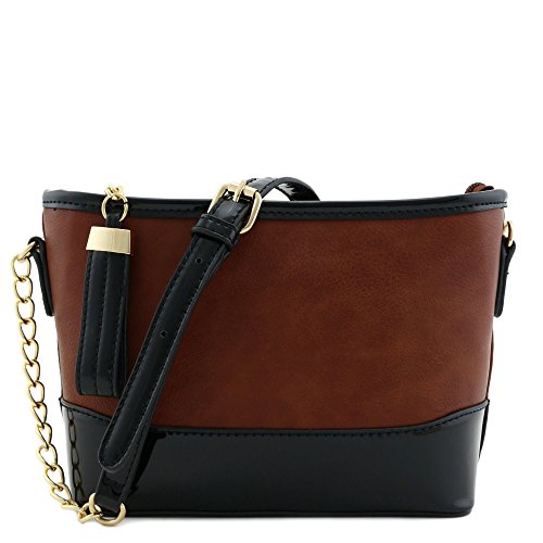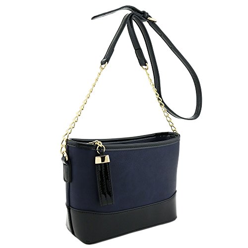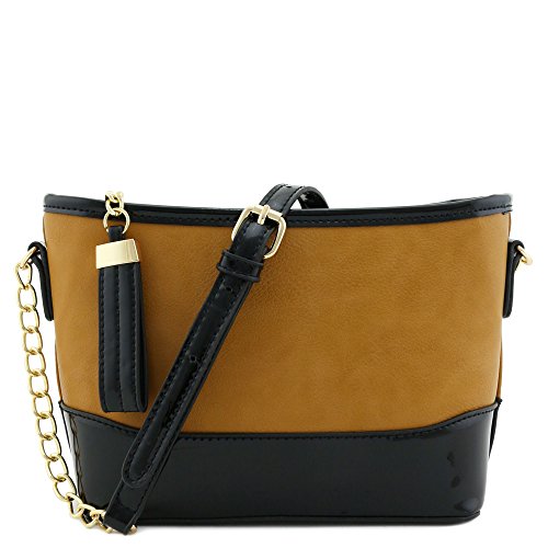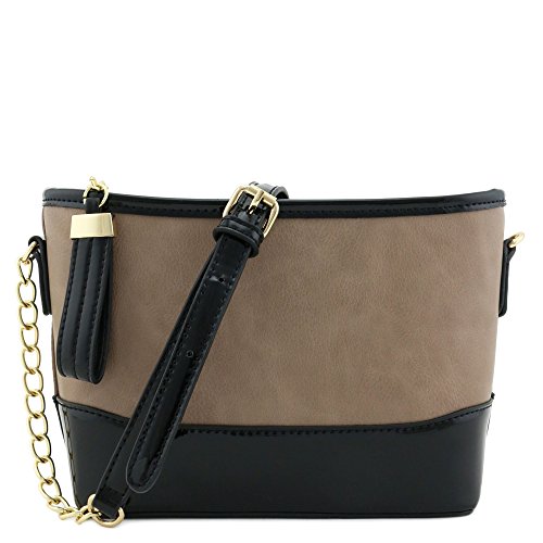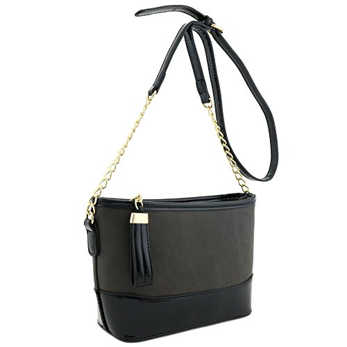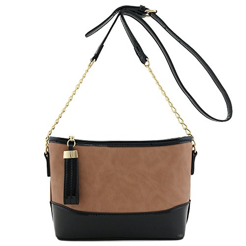 | Chain Strap Shoulder Bag with Patent Leather Trim Contrast |
