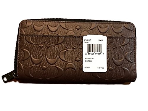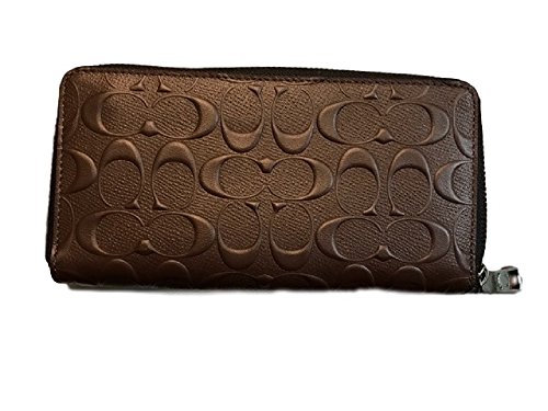 Coach Mens Embossed Signature logo Durable Leather Long Wallet (Mahogany)
