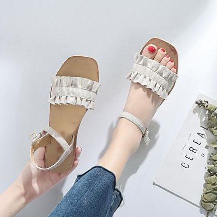 Beach Look Cody - Soft Satin Feeling Suede Frill Buckle Sandals Flat Women Casual