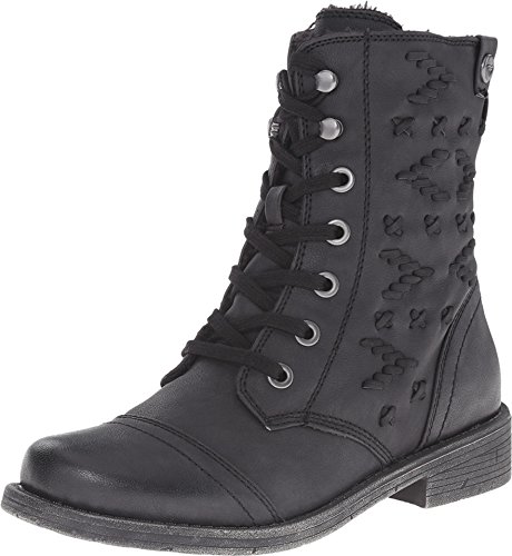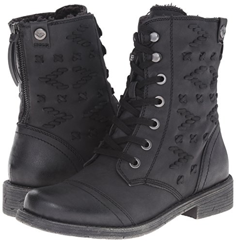 Combat-style boot in faux leather featuring lace-up front and self-embroidery at sides Cap toe Rear zipper Brand : Roxy Item model num : CROSWELL BOOT MPN(PartNumber) : ARJB700266-001 EAN : 0888701606932 Product Dimensions(LxWxH) :