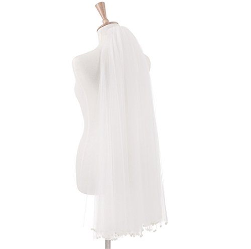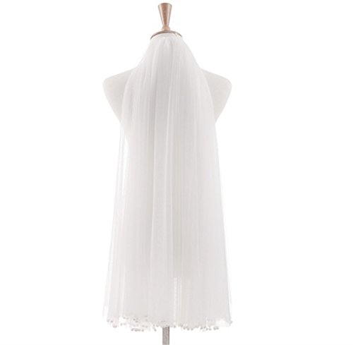 (Miao Duo)/Accessories/Scarves/DIRECT FROM USA/Miao Duo Simple Short Wedding Bridal Veil with Comb Pearls Fingertip Length